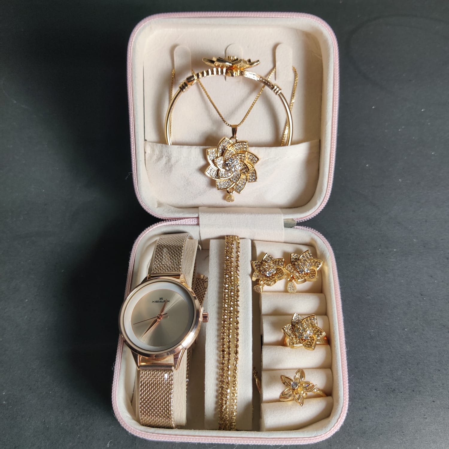 Set Includes: 1. 1x Stylish Digital Watch 2. 1x Pendant Necklace 3. 1 Pair of Matching Earrings 4. 2x Matching Ring 6. 1x Bracelet 7. 1x Handcuff