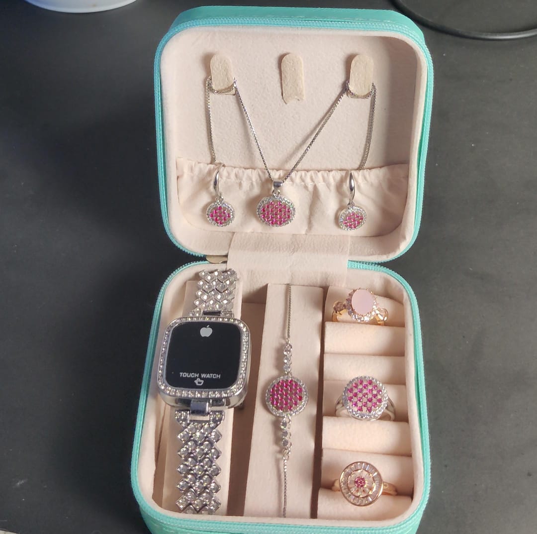 • Set Includes: 1. 1x Stylish Digital Watch 2. 1x Pendant Necklace 3. 1 Pair of Matching Earrings 4. 3x Matching Ring  6. 1x Bracelet